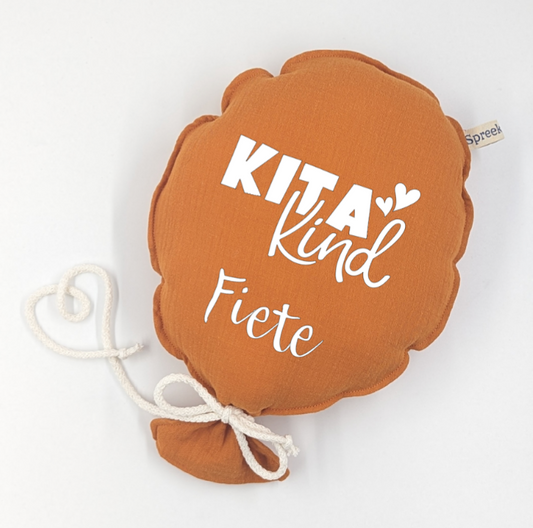 Stoffballon, KITA KIND Herz + Name, Wunschfarbe + Text personalisierbar