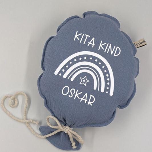 Stoffballon, KITA KIND Regenbogen + Name, Wunschfarbe + Text personalisierbar