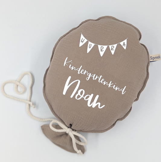 Stoffballon, Wimpel HURRA Kindergartenkind + Name, Wunschfarbe + Text personalisierbar