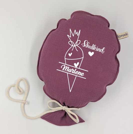 Stoffballon, Schultüte + Name, Wunschfarbe + Text personalisierbar