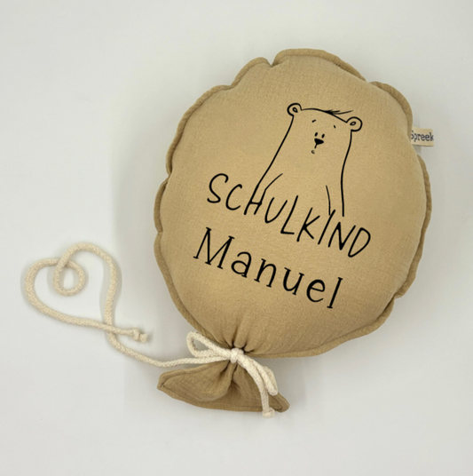 Stoffballon, Schulkind Bärchen + Name, Wunschfarbe + Text personalisierbar
