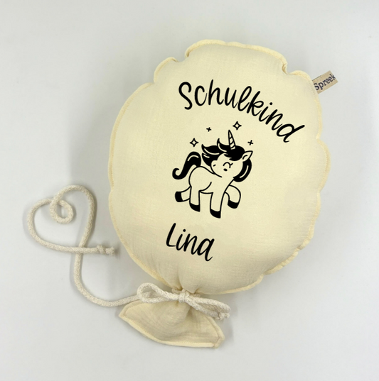 Stoffballon, Schulkind Einhorn + Name, Wunschfarbe + Text personalisierbar