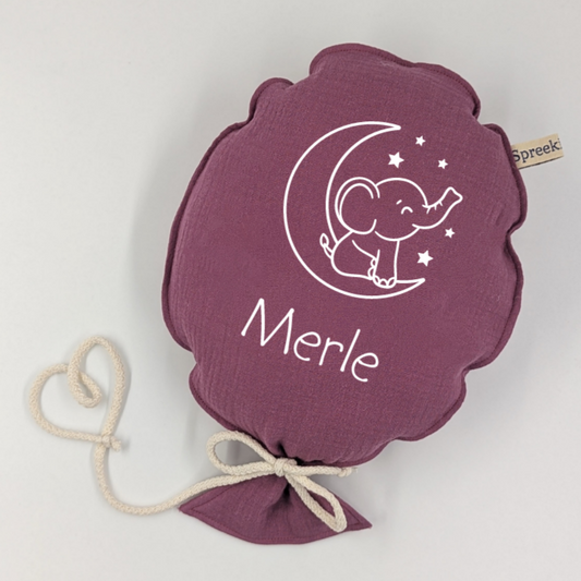 Stoffballon, Elefant auf Mond + Name, Wunschfarbe