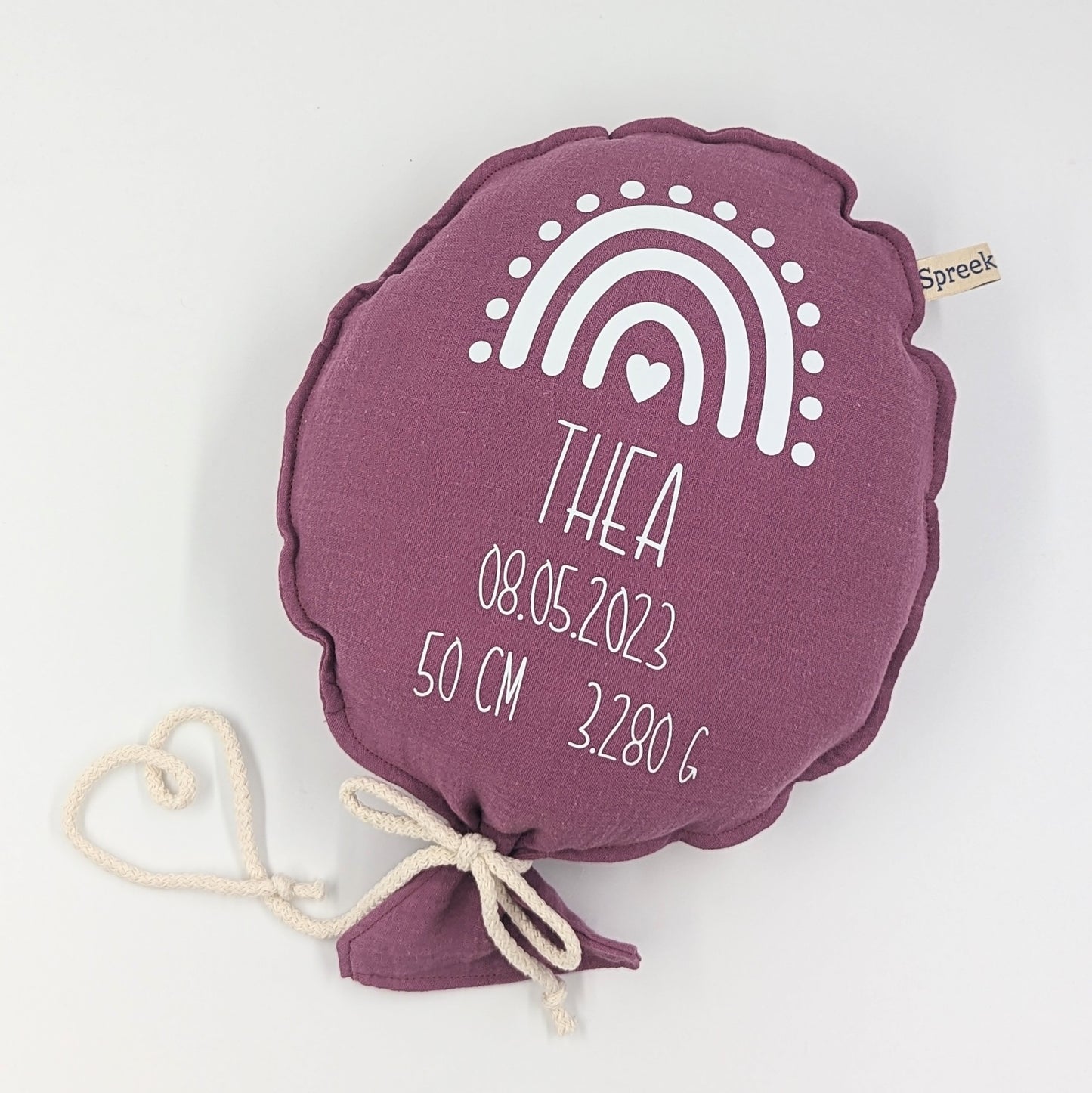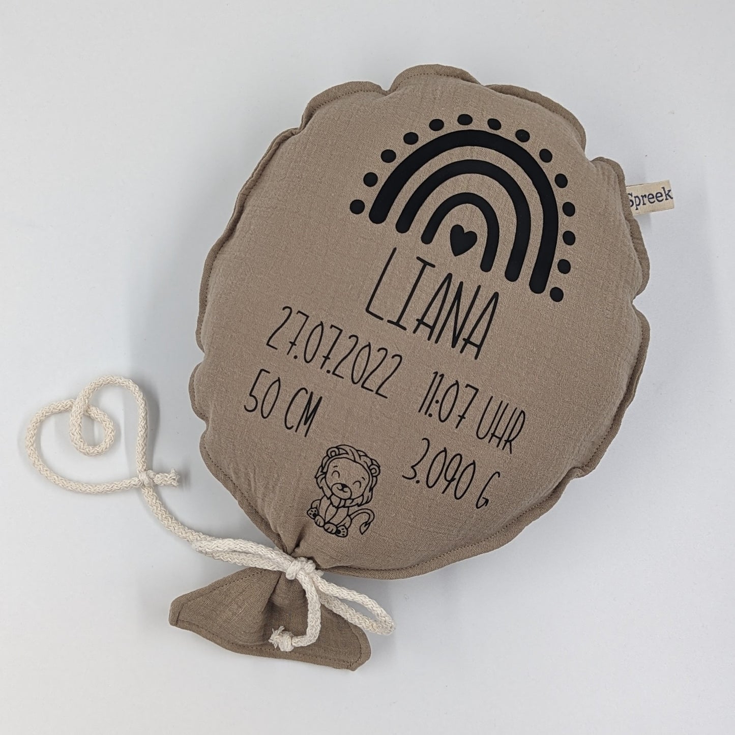 Stoffballon, GEBURTSDATEN REGENBOGEN, Wunschfarbe + Text personalisierbar